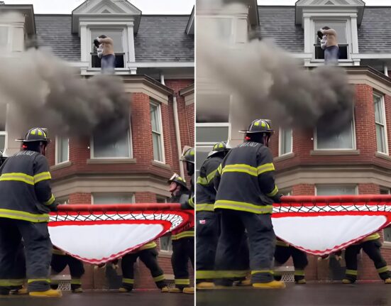 😨😨Todas as tentativas dos bombeiros de salvar a mãe e a criança se desfaziam inutilmente diante as línguas furiosas de fogo. E de