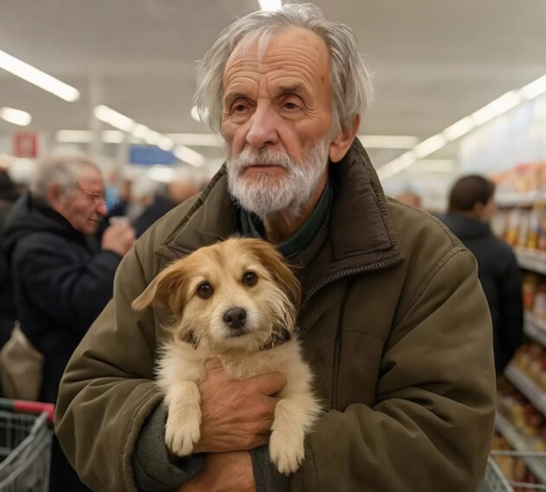 E de repente — uma cena que partiu meu coração. Um senhor idoso no caixa, com as mãos trêmulas, contava notas amassadas. “Não é suficiente”, disse friamente a caixa. Um pote de feijão foi colocado de lado, depois um saco de arroz. Ao lado dele, o cachorro magro abanava o rabo feliz, como se tudo estivesse bem.