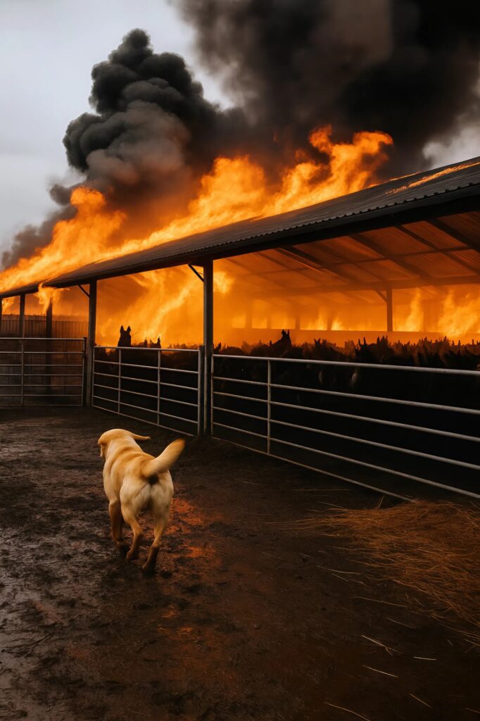 Vestindo-me às pressas, corri em direção à fazenda, chamando meu cachorro, mas ao redor reinava um silêncio assustador. Só quando me aproximei percebi onde ele estava. Meu cão, James, já estava dentro daquele inferno de chamas.