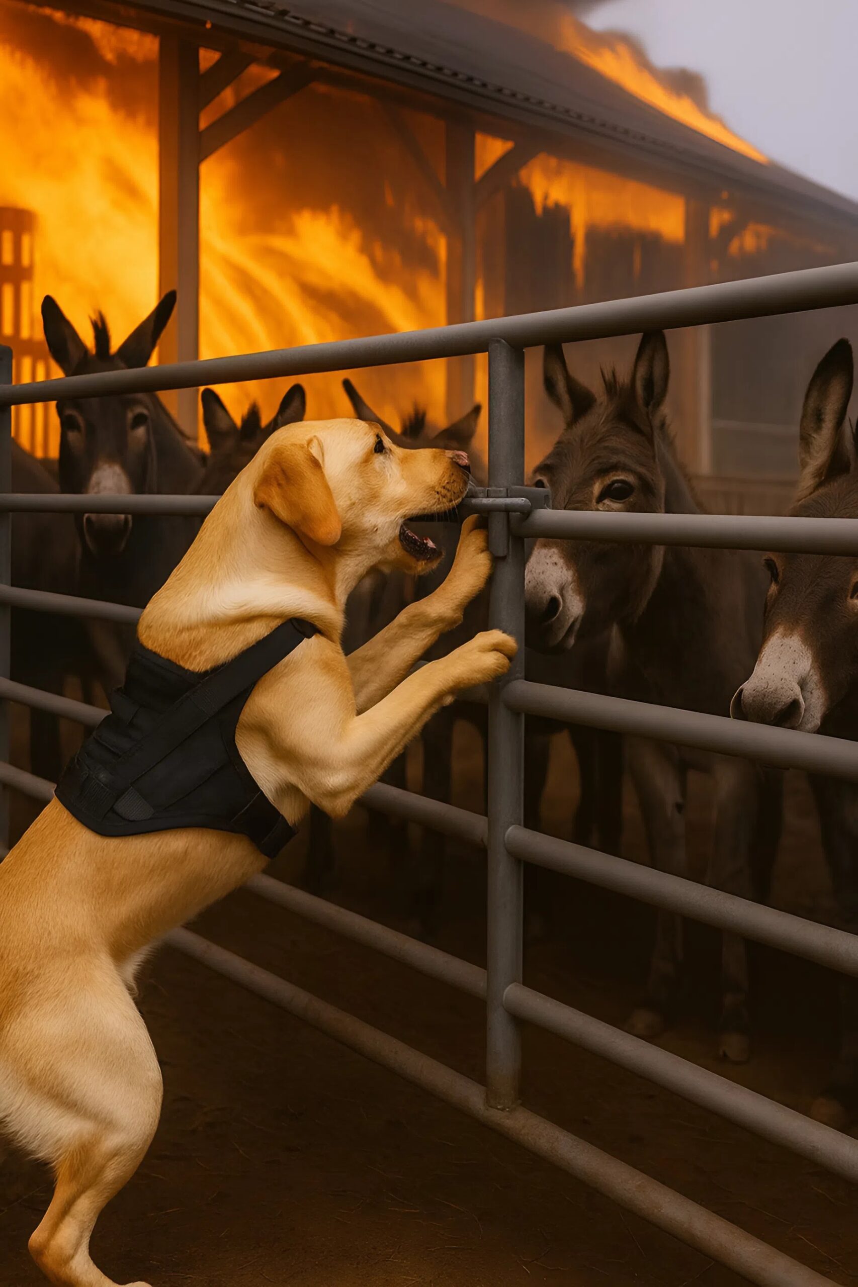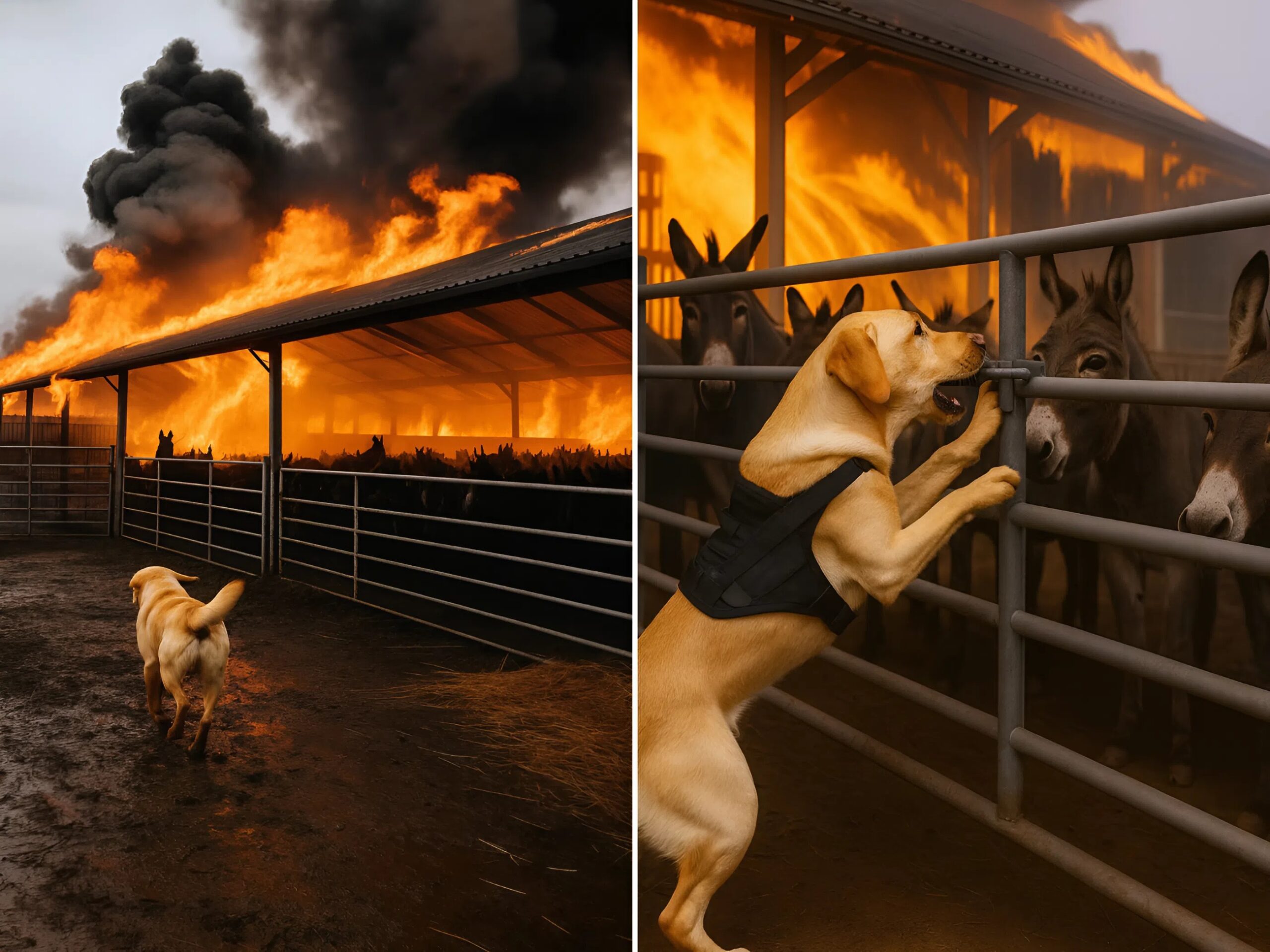 Ele corria entre as gaiolas, pressionando habilmente as travas com as patas e libertando os animais um por um. Atordoados pela fumaça e pelo medo, eles escapavam para fora, enquanto ele mergulhava novamente no fogo como se o calor não o afetasse.