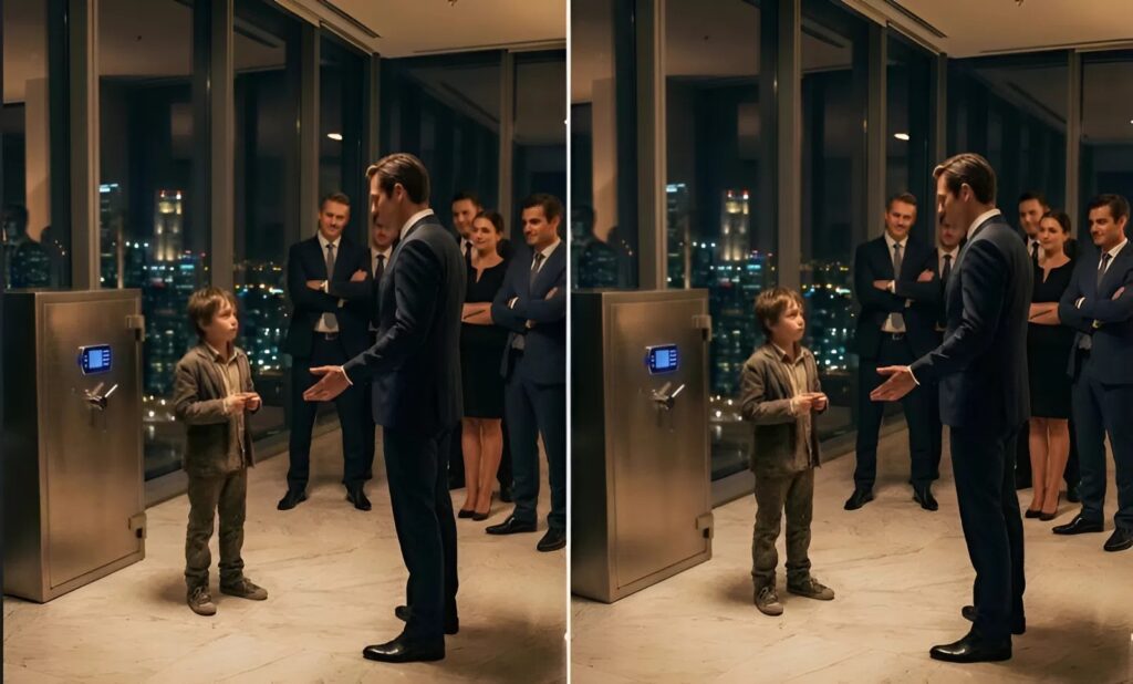 O menino não se mexeu imediatamente. Ficou parado sobre o mármore frio, observando não o cofre inteiro — mas apenas a fechadura. Sua respiração era tranquila. Tranquila demais para alguém pressionado.