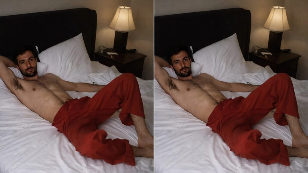 Nolan estava sentado, apoiado na cabeceira, com um laptop no colo. Na tela — vários rostos masculinos em pequenas janelas.