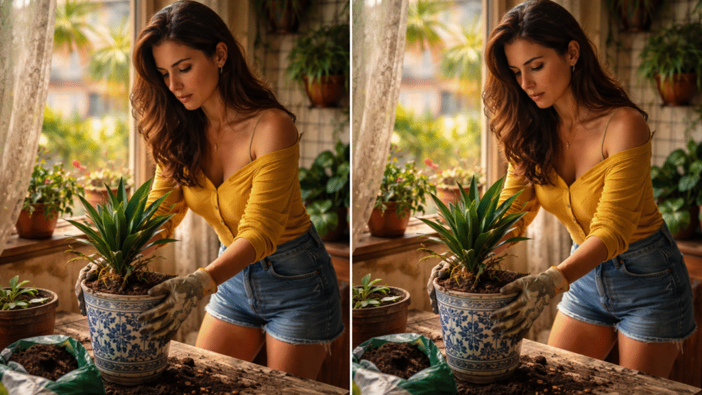 Quando voltei para dentro do apartamento, o silêncio parecia ainda mais pesado. Meu olhar acabou parando nas plantas perto da janela. Já fazia tempo que eu pensava em trocá-las de vaso, mas sempre deixava para depois. Naquele momento… por que não? Talvez isso me ajudasse a distrair a mente.