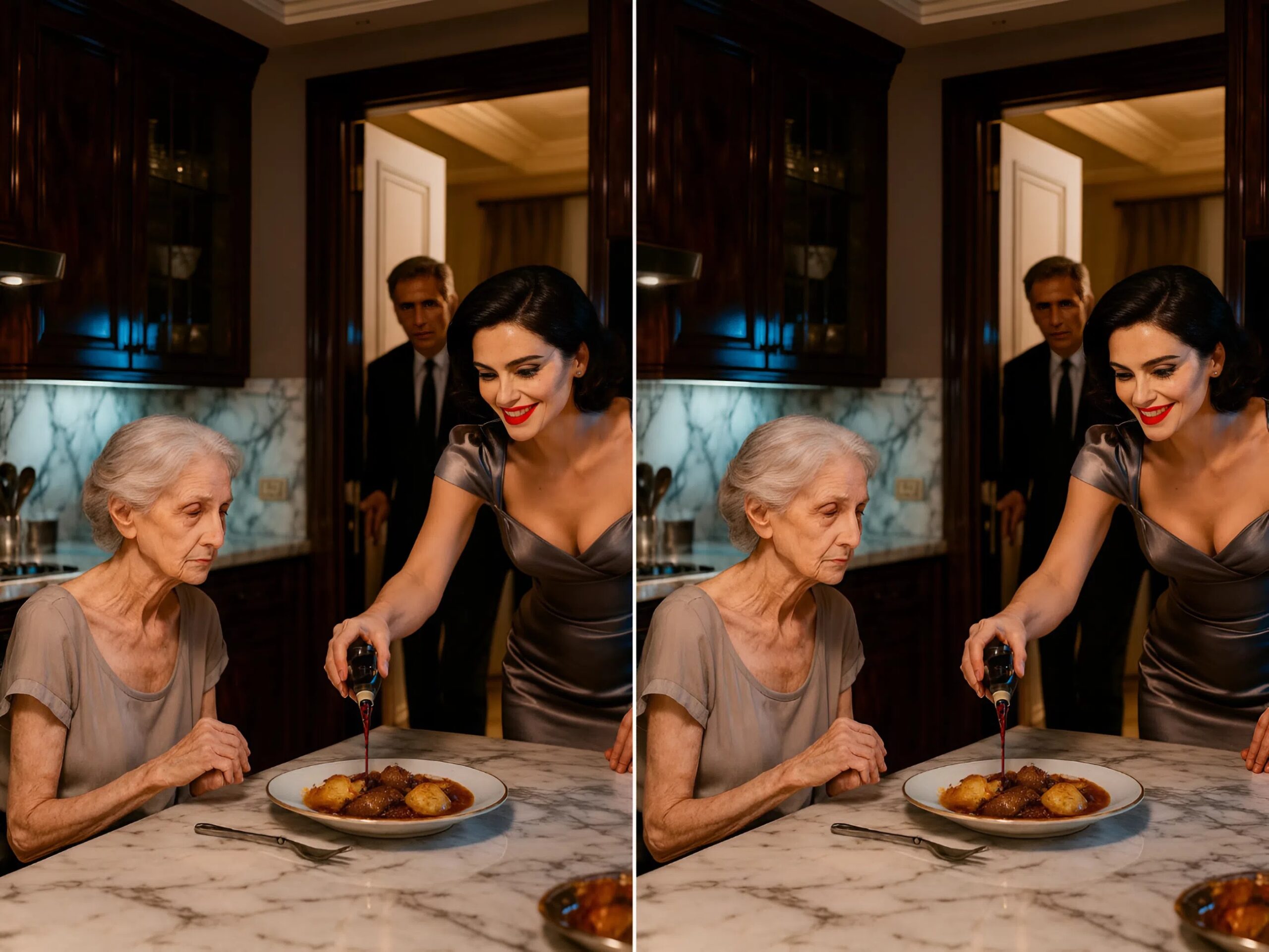 Minha mãe estava parada junto à mesa da cozinha, enxugando as lágrimas. À sua frente — um prato vazio. Minha esposa falava com voz uniforme, quase fria: