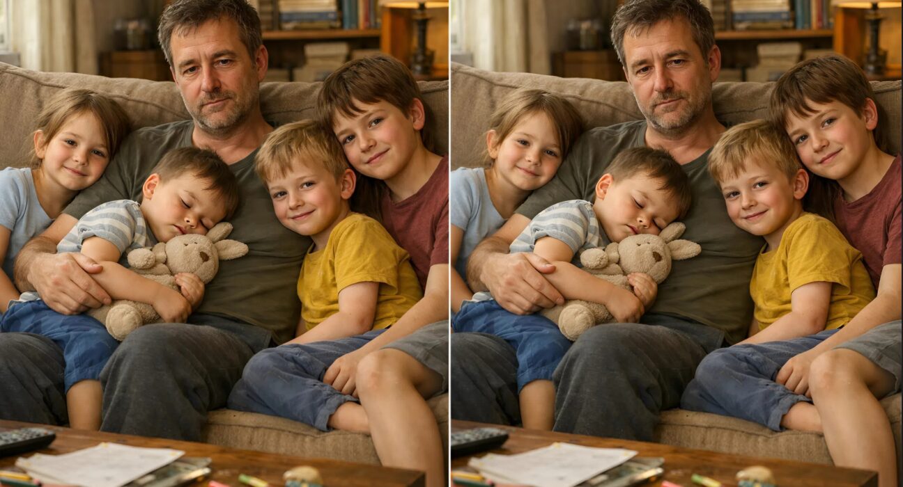 😲😲 Eu adotei quatro crianças que queriam separar umas das outras — e, um ano depois, uma desconhecida apareceu dizendo quem realmente eram seus pais biológicos. Fiquei completamente chocado com a verdade. Há dois anos, meu mundo desabou. Minha esposa e nosso filho de seis anos morreram em um acidente de carro. Depois disso, eu