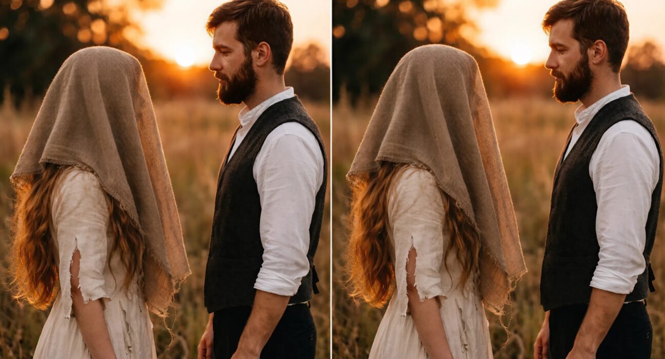 Ela foi levada ao mercado de noivas com um saco na cabeça, porque na aldeia sussurravam que ela “não era como as outras”… Mas quando, na primeira noite de casamento, ele viu o seu rosto, não conseguiu desviar o olhar nem se mexer
