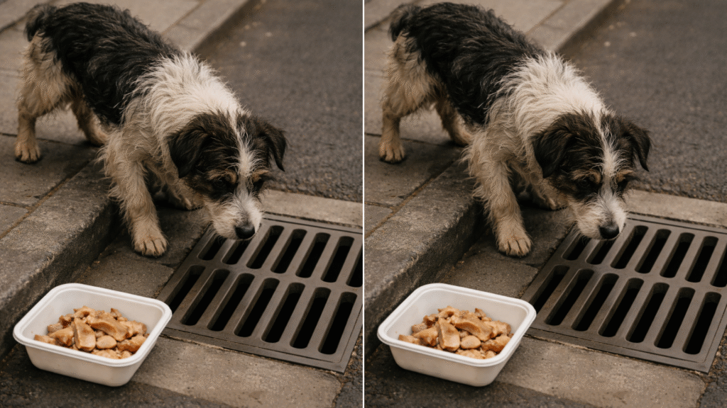 Certa tarde, voltava da mercearia com um pacote de carne. O cachorro estava lá outra vez — imóvel, completamente focado. Tirei um osso da sacola e ofereci a ele. Mas, ao invés de comer com pressa, ele pegou o osso com cuidado e saiu silenciosamente.
